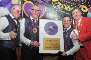 Drei von uns sind auch Senatoren bei den Flüssigen n.e.V., dem tollen lila Verein. Und man hat uns dieses Jahr eine lila Schallplatte verliehen!!